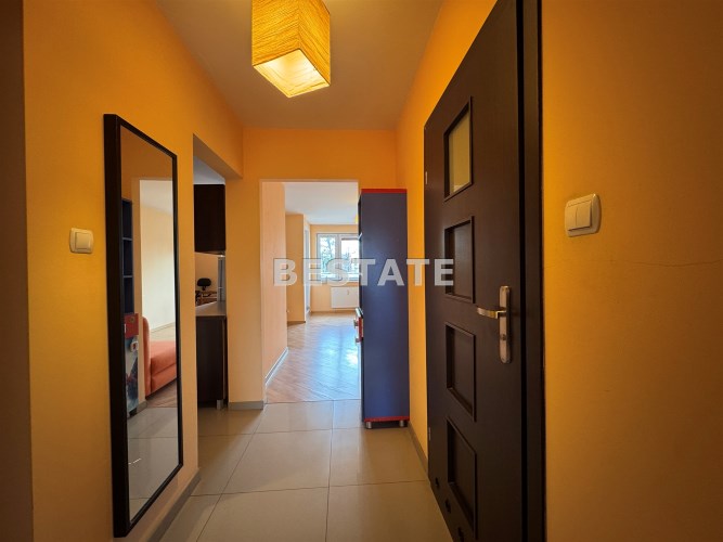 BESTATE Nieruchomości Pabianice oferuje do wynajęcia dwupokojowe mieszkanie o powierzchni 52,43 m.kw. usytuowane na 2 piętrze w siedmiopiętrowym bloku z windą, w Łodzi przy ul. Tymienieckiego. Mieszkanie składa się salonu z kuchnią, sypialni, przestronnego korytarza i łazienki z wc. Mieszkanie umeblowane z balkonem.