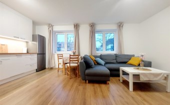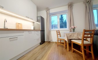 Nieruchomość składa się z salonu z kuchnią w aneksie, sypialni, łazienki z prysznicem oraz wc, przedpokoju. Kuchnia z meblami i sprzętem agd (lodówko-zamrażarka, zmywarka, płyta indukcyjna, piekarnik elektryczny, zlewozmywak, okap). Nieruchomość umeblowana. Ogrzewanie miejskie. Okna plastikowe. Dodatkowo piwnica o powierzchni około 8 m.kw.