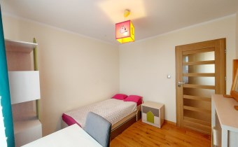 Nieruchomość składa się z salon z kuchnią w aneksie, 3 sypialni, łazienki z wanną, wc oraz otwartego przedpokoju. Kuchnia z meblami i sprzętem agd (lodówko-zamrażarka, zmywarka, kuchenka gazowa, piekarnik elektryczny, zlewozmywak, okap). Nieruchomość umeblowana. Ogrzewanie miejskie. Okna plastikowe. Dodatkowo balkon. Istnieje możliwość korzystania z piwnicy.